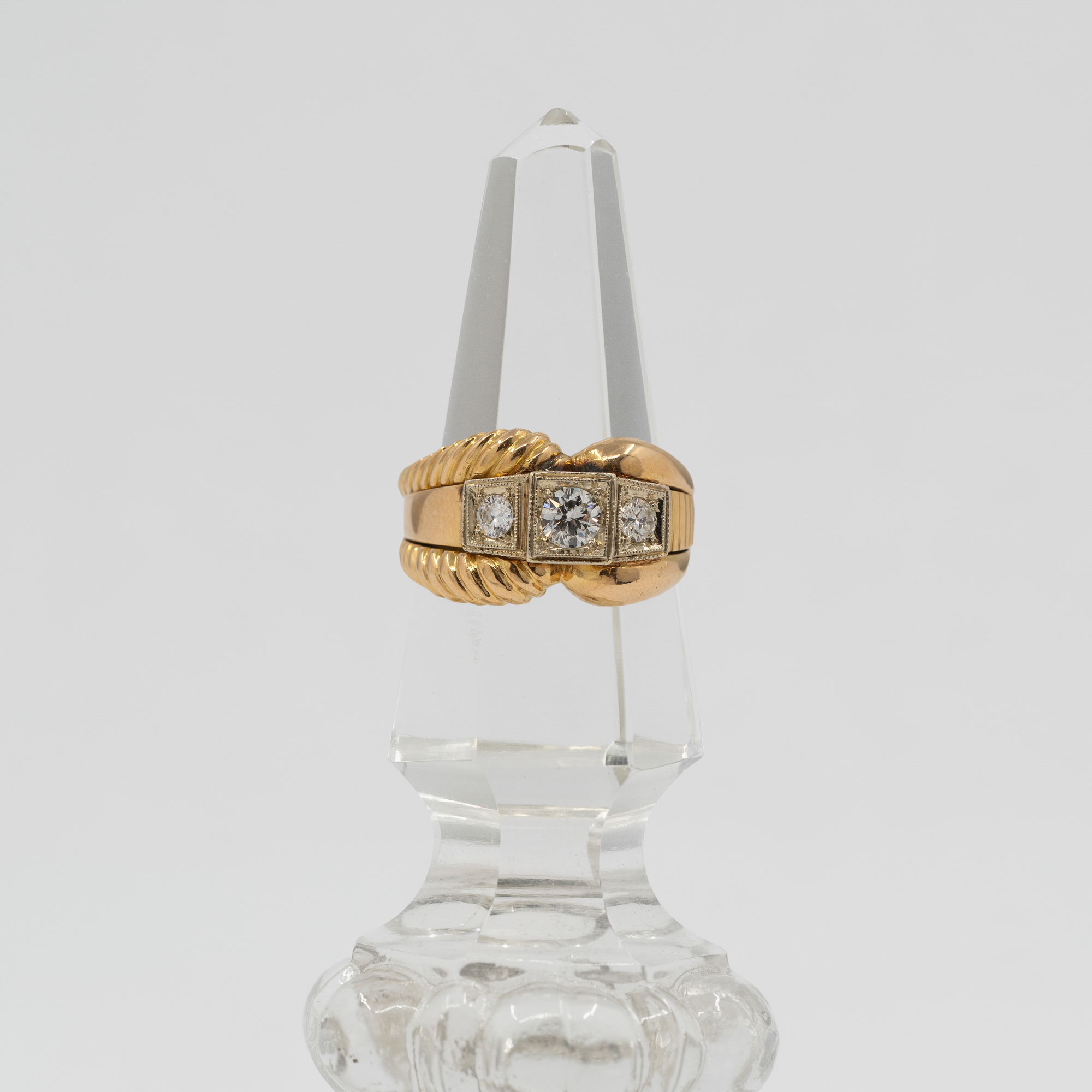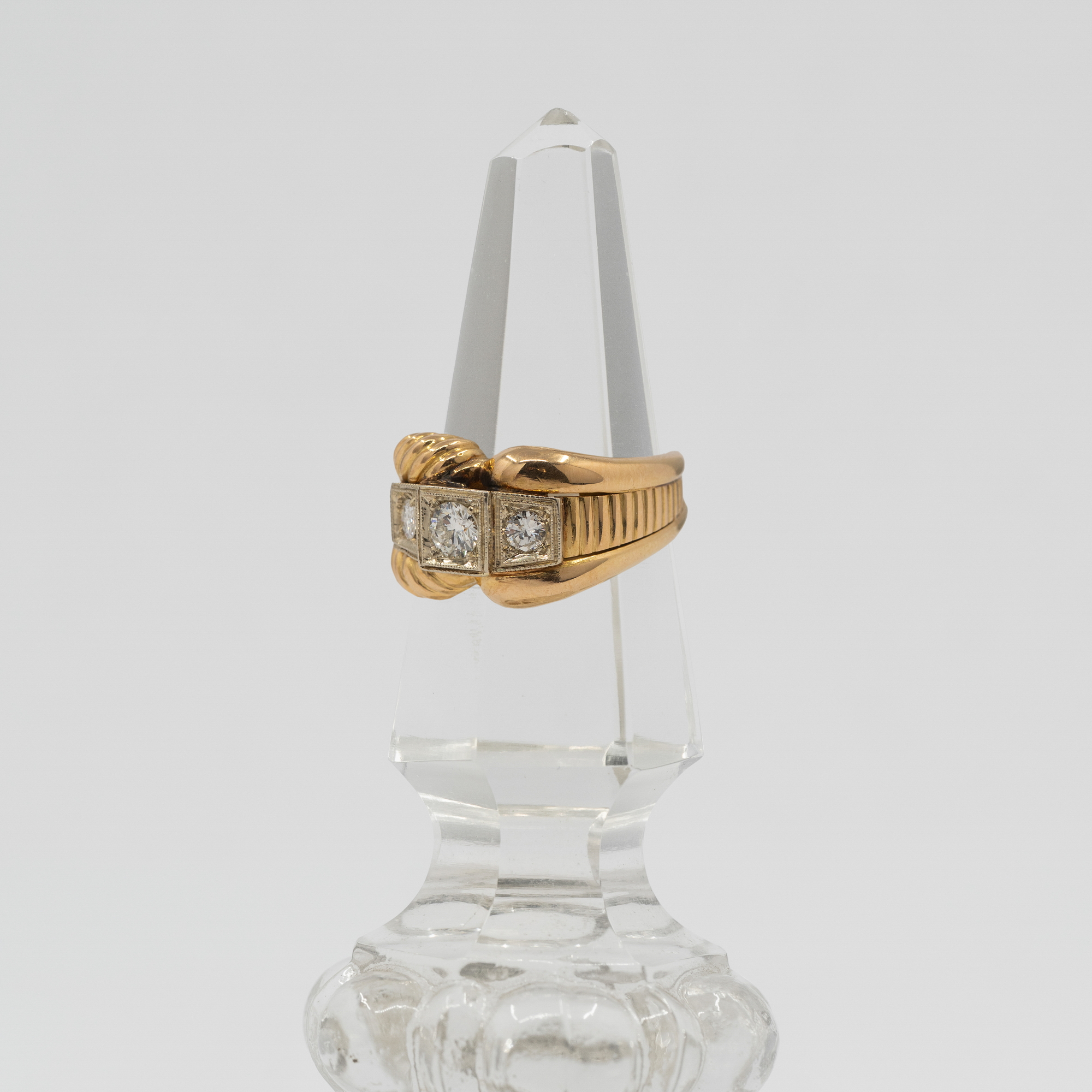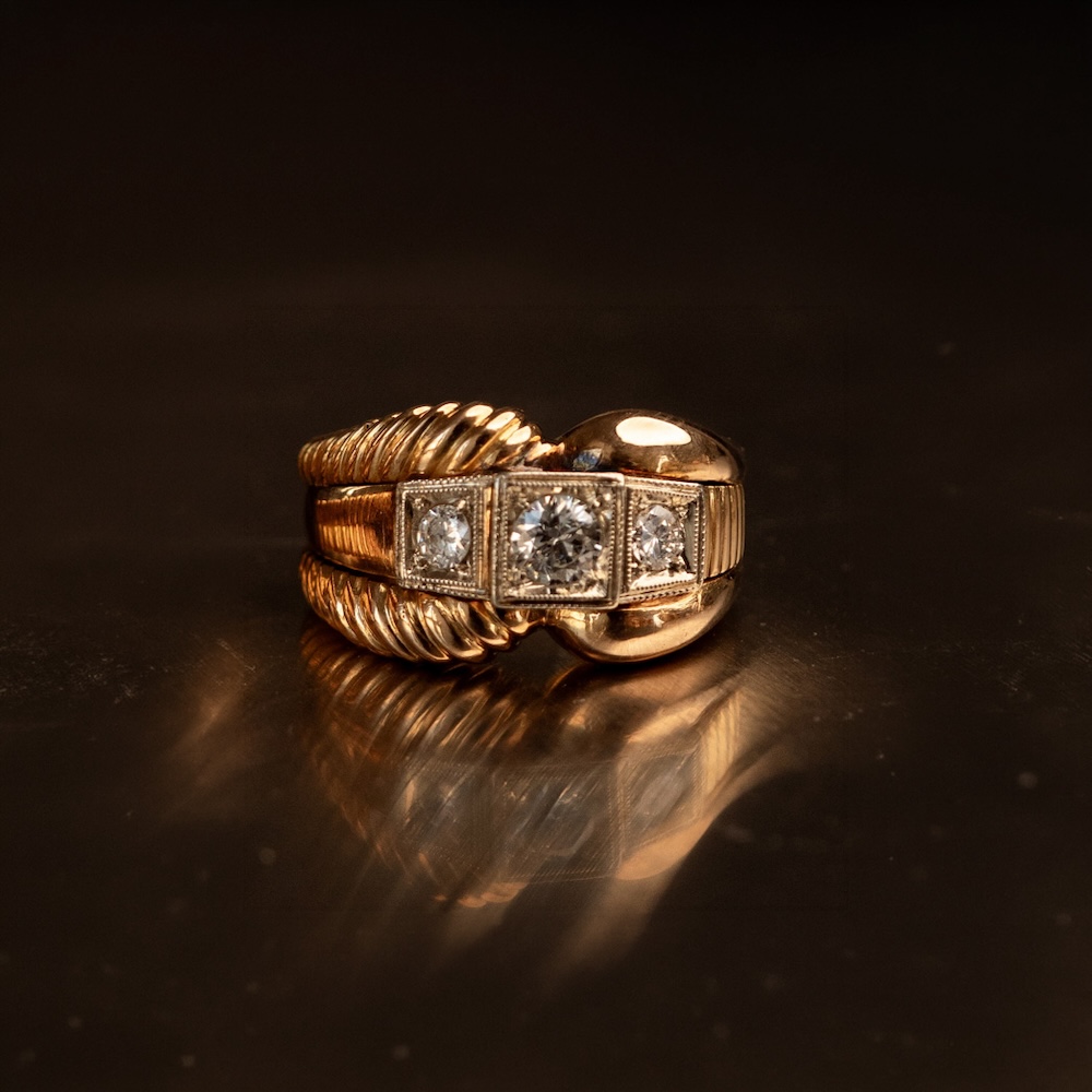 Moda na te masywne pierścionki o regularnych, geometrycznych kształtach zapanowała pod koniec lat 30, a jej rozkwit przypadł na lata 50. Symetryczny styl Art Deco został zinterpretowany na nowo, w mocniejszy i odważniejszy sposób. Nazwa tank (z ang. czołg) prawdopodobnie pochodzi od skojarzenia kształtu pierścionka ze śladem jaki pozostawia po sobie gąsienica jadącego czołgu. Główną rolę w tym modelu gra złoto.
