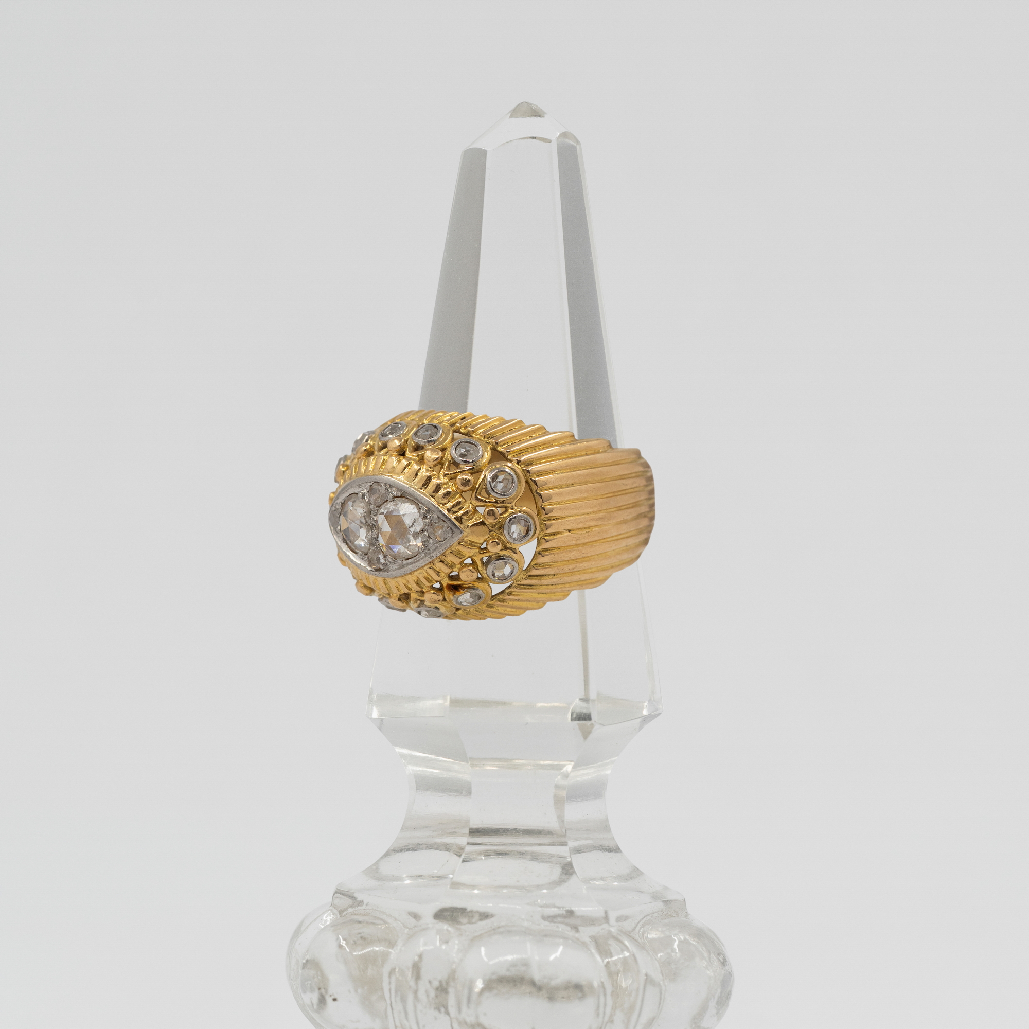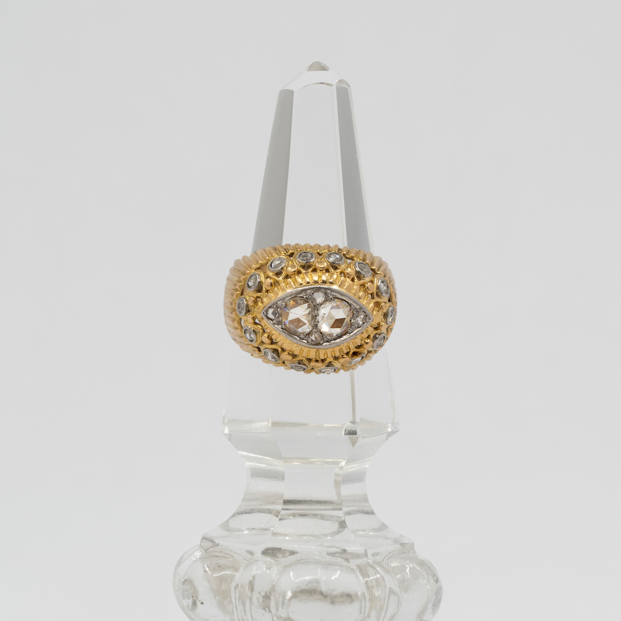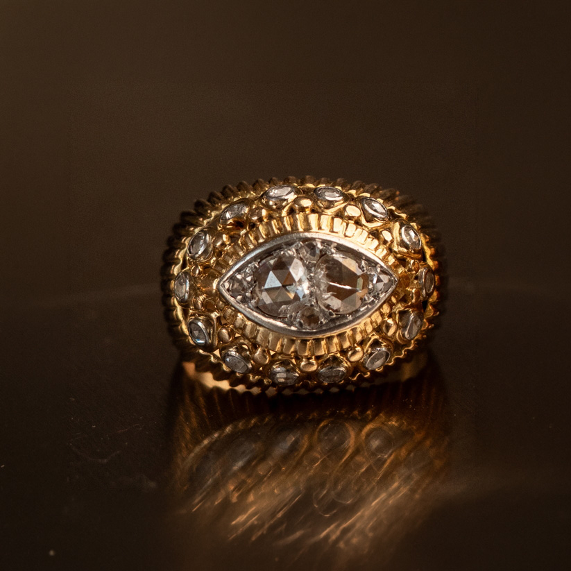 Kamienie i kruszce: 20 szt. rozet diamentowych łącznie ~ 0,75 ct I-J/VS-SI złoto próby 750 Waga: 11,21 g Rozmiar: 19 - oferujemy usługę zmiany rozmiaru